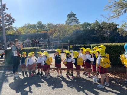 園外保育 公開日 2023/11/10 更新日 2023/11/10 うつぼ日記 大阪城がよく見えるところに着きました。子どもたちは大喜びです。近づくにつれその大きさ高さを感じて見上げていました。 いいね(0)