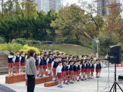 今日は靱公園バラ園コンサートに参加希望の5歳児が出演しました。