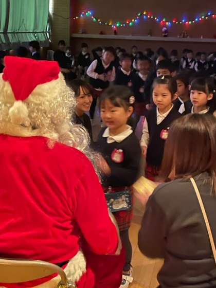 子どもたちからの質問に答えてくださったり、プレゼントを1人ずつに手渡してくれたりしました。じっと見つめる子どもたちの眼差しがキラキラ輝いていました。