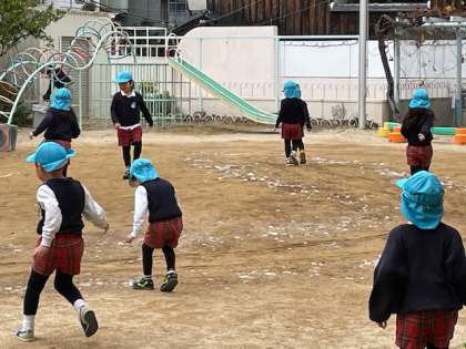 子どもたちが次々集まってきます。「寒い国から来てくれたんだね。氷かたくさん落ちてるよ」「そりに乗って帰って行ったんだね」このあと空をじっと見上げている子どもたちがたくさんいました。