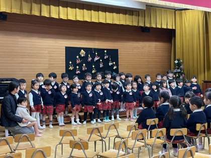 3歳児は「北の国から」を歌いました。1学期の終業式も同じように前に出て歌を歌ったのですが、どの学年もその頃からの成長を感じました。明日から冬休みに入りますがみんな元気に過ごせますように