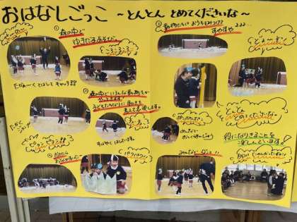 ?今年度各クラス1回ずつ園内研究保育を行いました。毎回、翌日にはこのような掲示物を園庭に出しておき、保護者の皆さんに子どもたちの様子を知らせています。