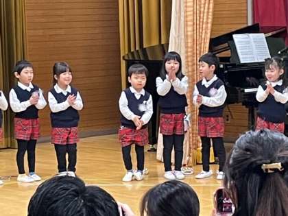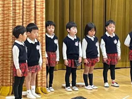 ?3日連続で行う生活発表会が始まりました。初日、すみれ組もも組の発表会です。久しぶりに参観人数制限なしで行うことができたので大勢の方に見ていただくことができました。4歳児すみれ組 楽器遊び「ふしぎなポケット」歌「たのしいね」「おおさむこさむ」