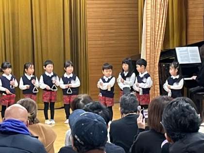 友達と顔を見合わせ、気持ちを合わせて楽器を鳴らす子どもたちがとってもかわいらしいです。