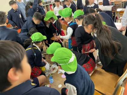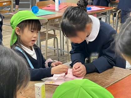 ?3年生が理科の学習の取り組みで作りあげたサイエンスランドは「かぜとゴムのひろば」「じしゃくコーナー」などそれぞれの教室で園児を楽しませるおもちゃがありました。3年生のお兄さんお姉さんがとても優しく関わってくれました。