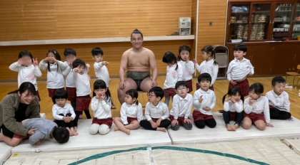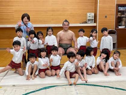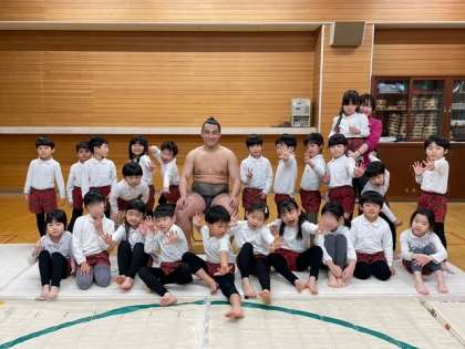 クラスごとに力士さんを囲んで写真をとりました