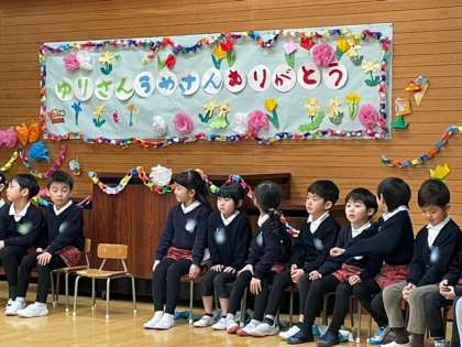 今日はお別れ会をしました。1週間後15日金曜日が保育修了式なので