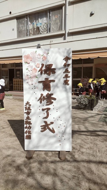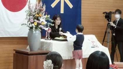 暖かな春の陽射しに包まれる日、保育修了式を行いました。5歳児うめ組ゆり組46名の子どもたちが巣立っていきました。5歳児が登園する時間には、3歳児4歳児がずらりと並び「おめでとう〜」と声をかけて出迎えていました。5歳児は保育証書を受け取ると、式に参加している大勢の人の前で「おおきくなったら〇〇になりたいです」と話しました。