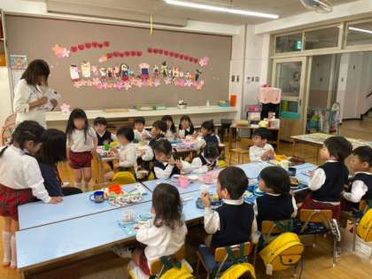 お弁当うれしいな 公開日 2024/04/12 更新日 2024/04/12 うつぼ日記 4歳児すみれ組ばら組のお弁当の様子です。今日はいいお天気だったのでお外でいっぱい遊びました。 お部屋に入ってひとやすみ、お楽しみのお弁当の時間です。保護者の皆様、お弁当作りありがとうございます。 いいね(0)