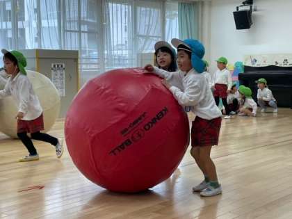 大玉転がし 公開日 2024/04/16 更新日 2024/04/16 うつぼ日記 憧れていた大きい組の新しい帽子が馴染んできました。クラス替えをしましたが2クラス合同でする活動もあり、皆で楽しく遊んでいます。今日は三階で紅白の大玉転がしをしました。大玉を見て大喜びの子どもたち、先生の話をしっかり聞いて参加していました。明日は保育参観とPTA総会です。入園進級した子どもたちの様子をご覧くださいね。 いいね(0)