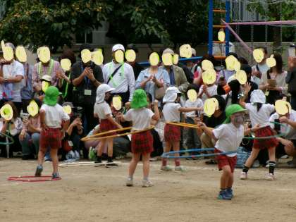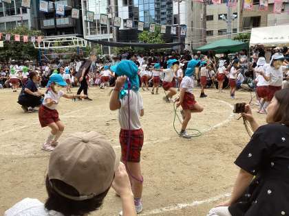 縄跳びとフープに4月から取り組んできました。子どもは自分でも「上手になった」と上達を感じているようです。今日はその成果を大勢のおうちの人の前で披露しました。フープを腰で回す技では、「おー!」と歓声が上がり子どもたちも嬉しかったと思います。今後も様々な場面で、「努力を重ねることで、少しずつ変化していく面白さややりがい」を感じてほしいと願っています。パラバルーンでは、友達と息を合わせて、いろいろな技に挑戦しました。タイミングを知らせ合うための掛け声も響いて感動でした。