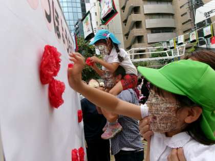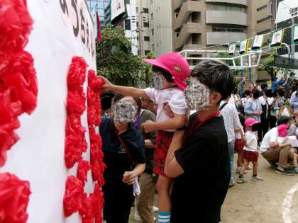みんなが貼り終えると…大きい140の文字ができあがりました!