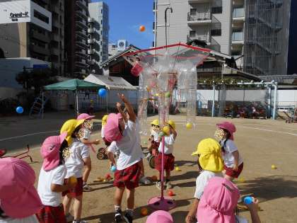 玉入れやってみたい! 公開日 2025/10/08 更新日 2025/10/08 うつぼ日記 運動会で4歳児がやっていたタコとクラゲの玉入れ。今まで、「頑張れー!」と応援していた3歳児ですが、「おもしろそう!」「やってみたい!」という気持ちがだんだん大きくなってきました。 園庭に玉入れのかごを出すと、「やりたい!」と子ども達が集まってきました。球を上に投げるのは難しかったけれど、入るまで何度も挑戦していました。 いいね(0)