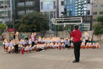 保育園の5歳児さんも園児と同様に訓練の合図を受けて、園庭に避難しました。