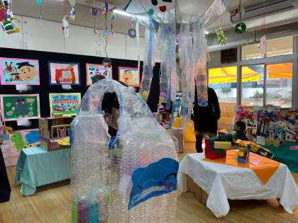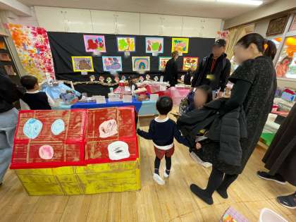 作品展を行いました。お部屋の中には子どもたちの作品がたくさんあり、どの場所も楽しい雰囲気でした。