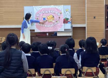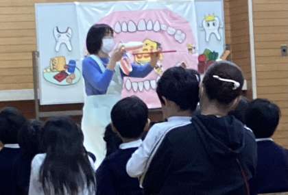 歯磨き指導 公開日 2025/12/04 更新日 2025/12/04 うつぼ日記 今日は、歯科衛生士の先生に来ていただいて、歯磨き指導をしていただきました。おやつは1日1回、丁寧に歯を磨く、よく噛んで食べる など大切なことを教わりました。先生手作りの視覚教材に興味をもってしっかりお話を聞いていました。口の中が清潔だと、風邪をひきにくいというお話もありました。今日のお話を思い出しながらしっかり毎日の歯磨きがんばってほしいと思います。 いいね(0)