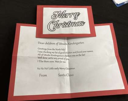 うれしいお手紙を見つけました 公開日 2025/12/05 更新日 2025/12/05 うつぼ日記 6クラスの子どもたちが集まり、クリスマスツリーを見ていると、お手紙を発見しました。もうすぐ会いに行くよ と書かれたお手紙に、子どもたちは大喜びです。ジングルベルの曲でみんなでダンスをしました。 いいね(0)