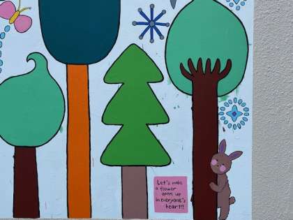 壁画画家今川さんが下絵を描き始めてくださったのが7月1日でした。猛暑の中描き続けてくださり下絵完成、その後園児が10月10日修了児が10月25日に色を塗りました。今川さんが仕上げをしてくださりこの度完成しました!
