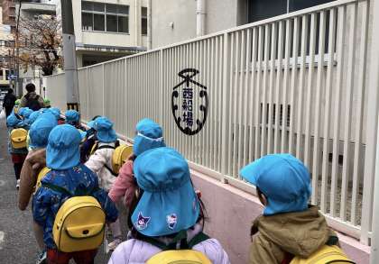 西船場小学校との交流 公開日 2025/12/11 更新日 2025/12/11 うつぼ日記 5歳児うめ組ゆり組が西船場小学校に出かけました。冬の靭公園を通り抜け小学校へ、公園から運動場や校舎を見て、大喜びでした。1学期には、6年生のお兄さんお姉さんたちと一緒に小学校のプールで遊びました。そのことを思い出している子どもたちもいました。 いいね(0)