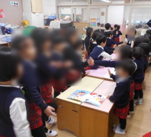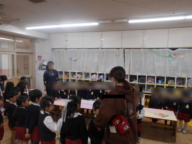 年長組さんがたんぽぽ組のお部屋に朝の挨拶活動に来てくれました。
