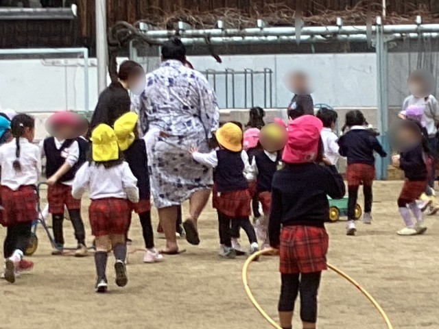 おすもう大会が終わり、おすもうさんを見送る時は、「ありがとう」「おすもうがんばってね」と声をかけながらバイバイと手を振っていました。思いがけず、少しの時間、園庭で遊んでくださる時間もあり、靭幼稚園のお庭が喜びいっぱいキラキラ輝いていました。力持ちのおすもうさん、優しいおすもうさん、子どもたちは憧れの眼差しと憧れの気持ちで見送りました。このような時間をつくってくださった伊勢ヶ濱部屋の皆様に感謝です。ありがとうございました。