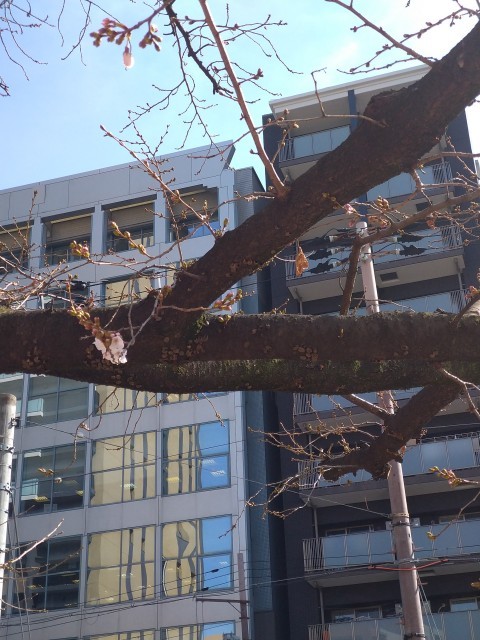 温かい日差しの中、桜が2輪ほど咲いていました。もう春ですね。