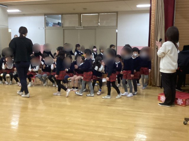 たんぽぽ組の歌は「どんな色が好き」と「つぼみ」、楽器遊びは「てをたたきましょう」大好きなお家の方に見てもらいながら歌ったり楽器を鳴らしたりしました。みんな心も体も成長して大きくなりました。4月になったら年中さんですね。