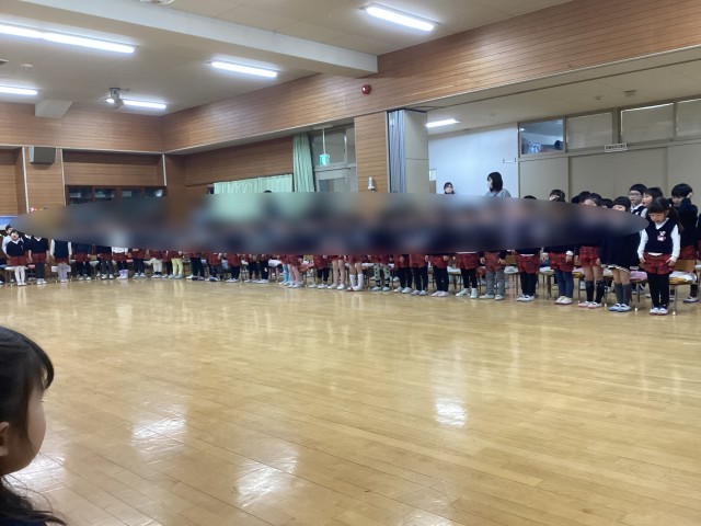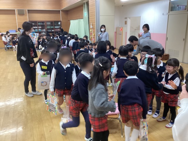 年長さんからの歌は「みんな友達」がっこういってもずっとともだち の歌詞が何度も繰り返されます。お別れ会を締めくくるのにふさわしい歌でした。そのあと、お弁当は3学年入り混じって食べました。和やかないい時間でした。うめ組さんゆり組さんありがとう。年中年少さんお別れ会の準備とプレゼント作りありがとう。
