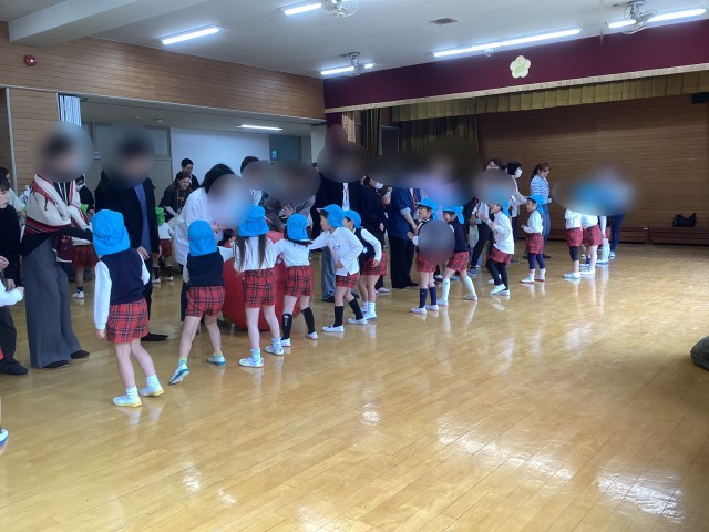 今日は3月のお誕生会をしました。子どもたちが作ったひな人形も飾り、お誕生日を迎えた子どもたちをみんなでお祝いしました。最後に「ハッピーバースデーカーニバル」の曲で遊びました。4月生まれの子が円の中央に出ていき、スキップをして自分の席に戻り、次は5月生まれ 次々出ていくのがとっても楽しそうでした。これでみんなお誕生会を経験してひとつずつ大きくなりました。今日お休みだったお友達には後日プレゼントを渡しますね。