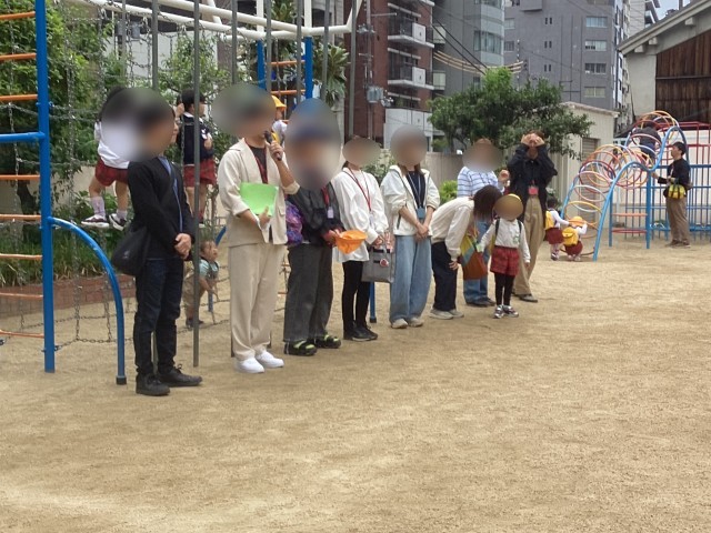 保育修了式が終わり、各クラスで先生から最後の挨拶を聞き、園庭に出ると