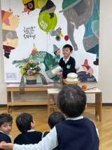 1月の誕生会をしました。ゆり組の子どもたちが、だるまのデザインの写真フレームを作...