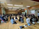 今日は鏡開きをしました。学年ごとに玄関ホールに集まり、一人ずつ順番にしました。子...