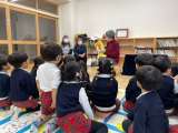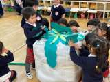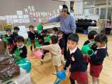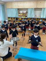 ?4歳児すみれ組は3階多目的室で楽器遊びをしていました。曲は「ふしぎなポケット」...
