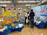 保護者の皆さんが、お子さんに話を聞きながら作品をご覧になったり、他のクラスの作品...