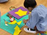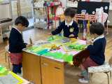 年長組ではクラス全員で製作活動に取り組んでいました。先生の話を聞いて、自分で材料...