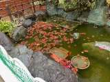 ?あら美しい!ここは京都のお寺の池かしら…いえいえ幼稚園の池です。池に浮かぶ紅葉...