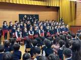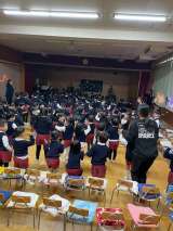 誕生会をしました。毎月1回6クラス集まってその月の誕生児を皆で お祝いします。年...