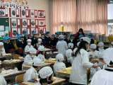 4時間目の授業が終わり、給食室まで給食を取りに来て教室まで運ぶ様子を見せてもらい...