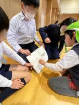5歳児うめ組ゆり組が西船場小学校に出かけました。3年生児童との交流活動です。3年...