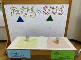 子ども同士で力いっぱい押し相撲をしました。遊戯室に応援の声が響き渡りました。