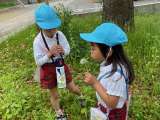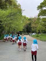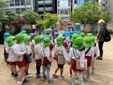 5歳児うめ組ゆり組が靱公園に「自然探検」に出かけました。子どもたちが肩からぶら下...