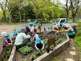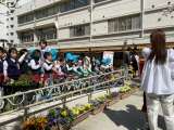 5歳児が靱公園に出かけました。 子どもたちが公園入り口近くの花壇2箇所にお花の苗...