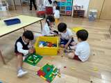 今日から1番小さい組のもも組とたんぽぽ組がやってきました。前日、ゆり組の保育室で...