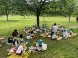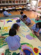 昨日の楽しかった遠足を絵の具を使ってかきました。「緑でかきたい」「この色がほしい...