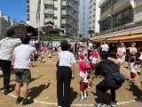 後半の玉入れは、保護者の出番です。白線上に立ったまま動かず、子どもたちから玉を受...