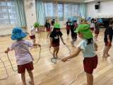 いろいろな色の中から自分で選んだ縄、持ち方回し方飛び越し方を 先生が遊びを通して...