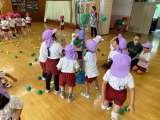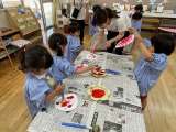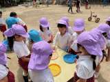 すみれ組・ばら組は、遊戯室で玉入れをしました。 今回は、すみれ組が勝ち、親子合同...
