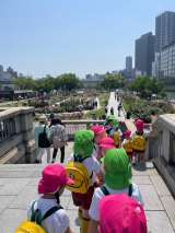 5歳児は、チャレンジ遊びのサーキット、しっぽ取り、パラバルーンをしました。 『チ...
