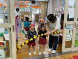 たんぽぽ組 大好きな電車ごっこ、保育室の中だけでなく廊下まで使って遊んでとっても...