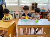 5歳児うめ組は折り紙をしていました。先生の話をよく聞いて、折り紙をよく見てしっか...